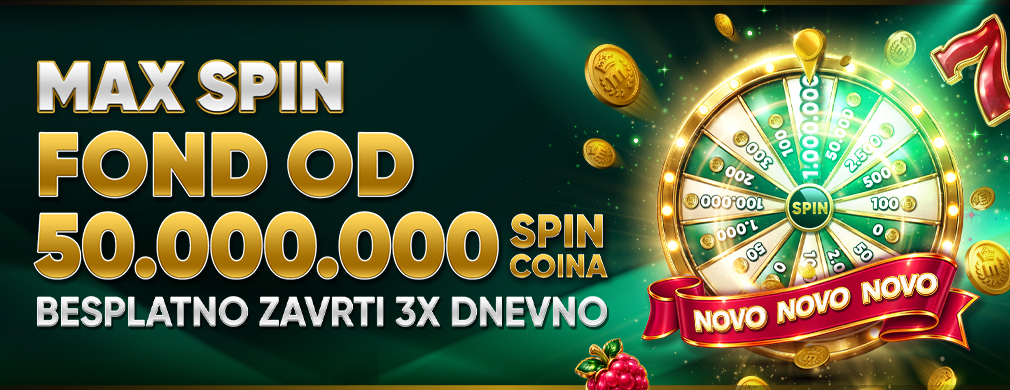 Zavrti Točak sreće 3x na svakih 24 časa i bez uloga osvoji dio nevjerovatnog fonda od 50.000.000 SpinCoin-a. Spinuj besplatno svakog dana, znaš da MaxBet uvijek ispoštuje!